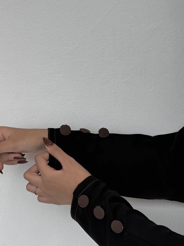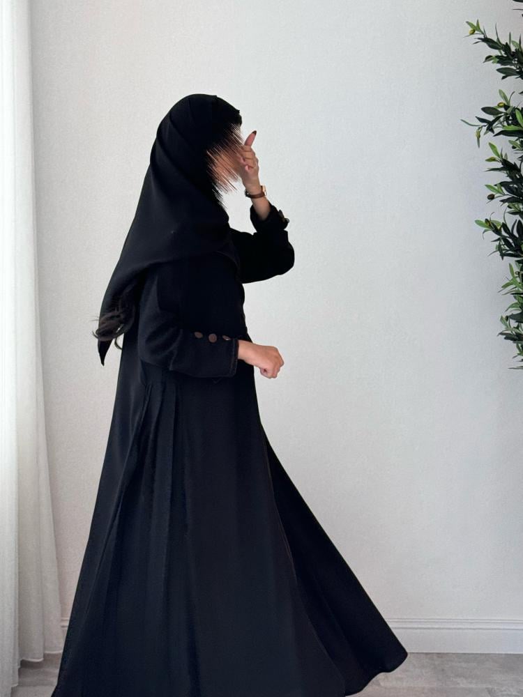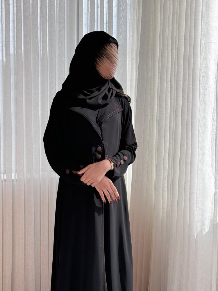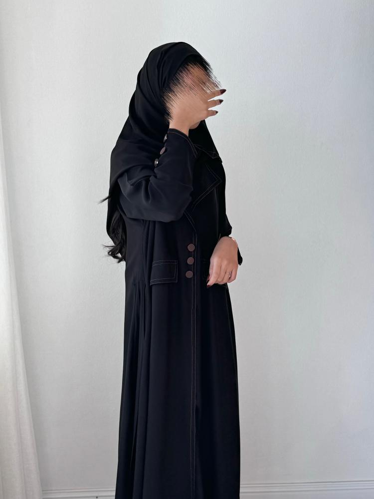 عباية بليزر بقماش ناعم وصيفي مخطط محدد باللون البني مع جيوب مخفيه